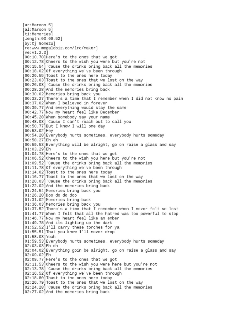 Words To Maroon 5 Memories Memories Maroon 5 Song 2021 10 08