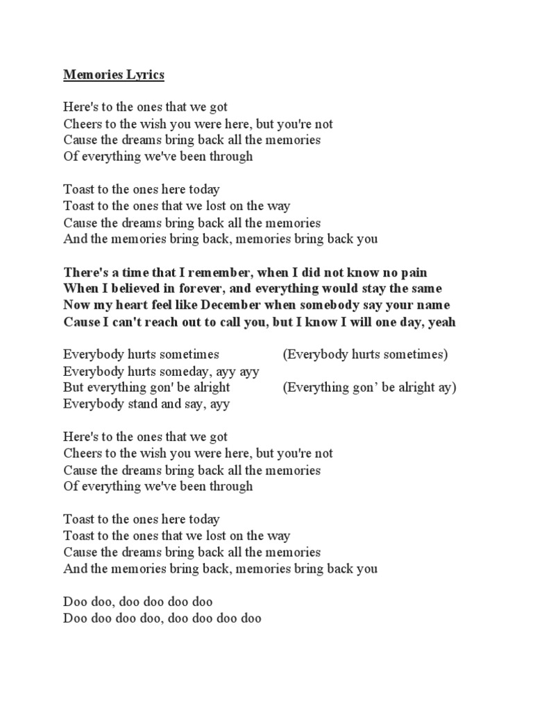 Memories Artist Maroon 5 Song Lyrics Word Facebook